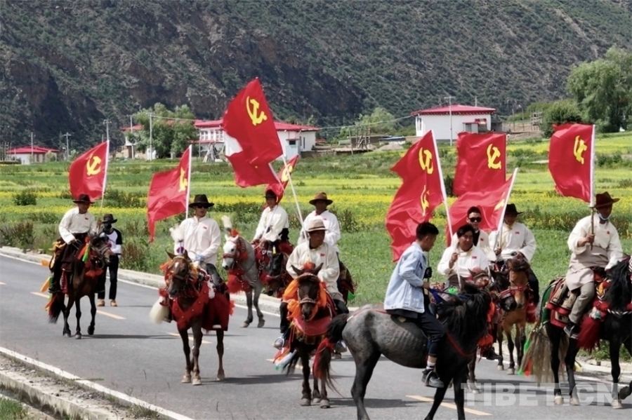 中國西藏網(wǎng)訊 103年風雨兼程,103年滄桑巨變。7月1日上午,西藏自治區(qū)昌都市洛隆縣在全縣范圍廣泛開展“七一”系列主題活動,通過騎馬巡游、紅色觀影、講好主題黨課、集體升國旗、重溫入黨誓詞、文藝演出等活動形式,熱烈慶祝中國共產(chǎn)黨成立103周年。