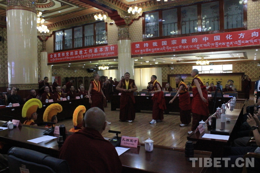 中國(guó)西藏網(wǎng)訊 6月30日,西藏佛學(xué)院舉辦少年活佛班學(xué)員初中畢業(yè)典禮暨學(xué)習(xí)成果展示活動(dòng)。少年活佛班畢業(yè)學(xué)員集體朗誦《畢業(yè)驪歌》,背誦《入菩薩行論》,并展示自己的書法作品和辯經(jīng)成果。