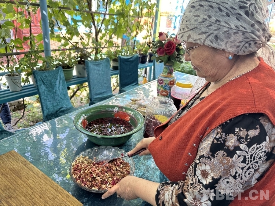 在喀贊其,108個居民家訪點是游客體驗當地生活的絕佳場所,記者團來到了其中一處家訪點,63歲的女主人哈妮克孜熱情接待了我們,在她們家游客不僅可以品嘗到樹莓核桃餡兒的烤包子,還可以親手參與制作,體驗烹飪的樂趣。34歲的女兒帕孜麗婭正在忙碌地制作,她的手藝傳承自母親,是家族傳統(tǒng)的一部分。講解員夏何努爾·尼合買吐拉向記者介紹到,這些家訪點為游客提供了深入了解當地文化的機會,同時根據游客的需求推出了各種體驗項目,其中以馕的制作與烤制體驗尤為受歡迎。