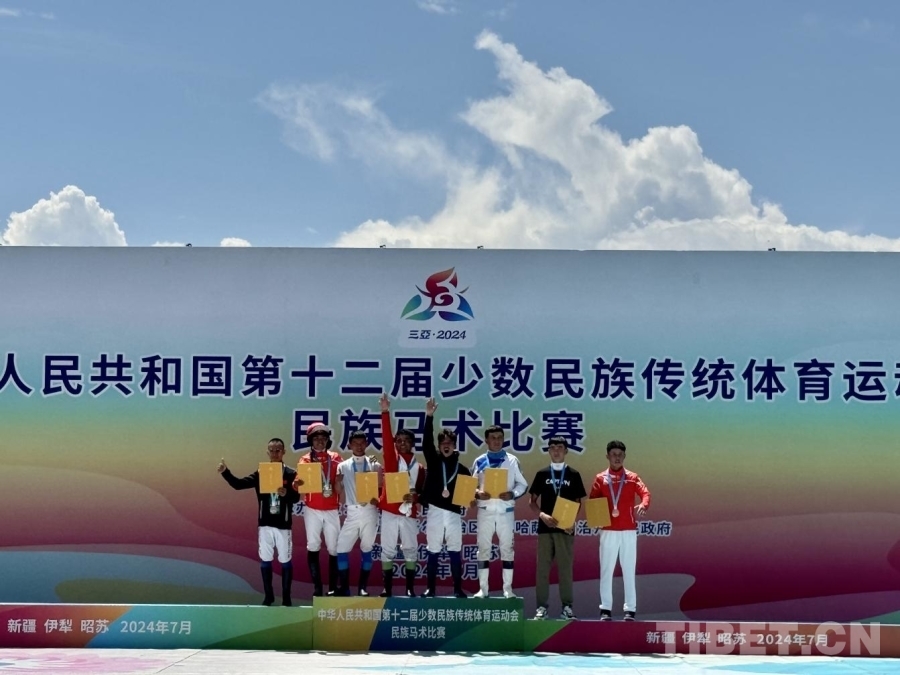 開幕式后,首個(gè)馬上項(xiàng)目——民族賽馬2000米比賽鳴槍起跑。經(jīng)過激烈角逐,西藏代表團(tuán)選手扎西平措獲一等獎(jiǎng)、陸江峰獲二等獎(jiǎng)、仁青倫珠獲三等獎(jiǎng)。