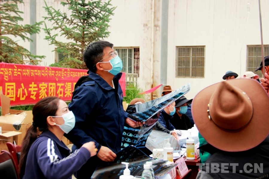 圖為中國人民解放軍總醫(yī)院第一醫(yī)學中心心血管內科副主任醫(yī)師蔣博在四川省甘孜州石渠縣洛須鎮(zhèn)石渠縣人民醫(yī)院第二醫(yī)療區(qū)義診 攝影:劉莉