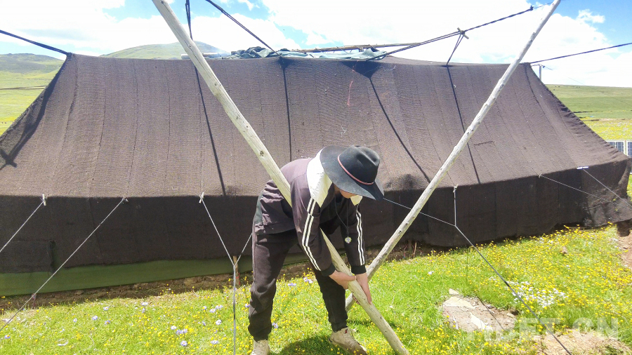 圖為阿察鎮(zhèn)阿察村牧民扎帳篷 攝影:澤村多吉