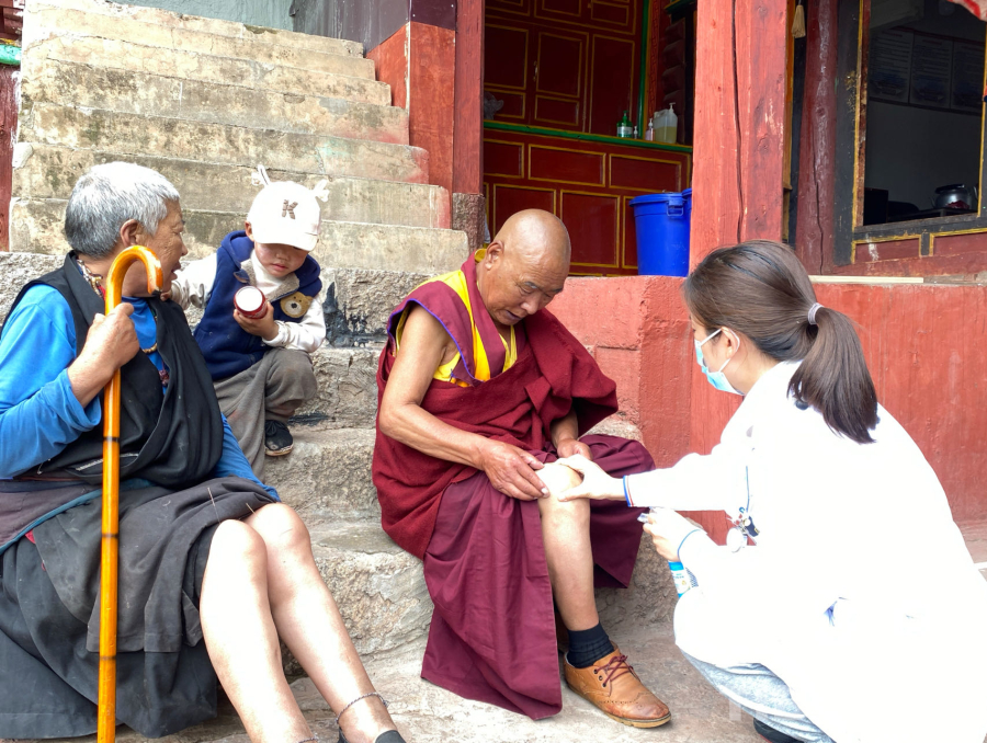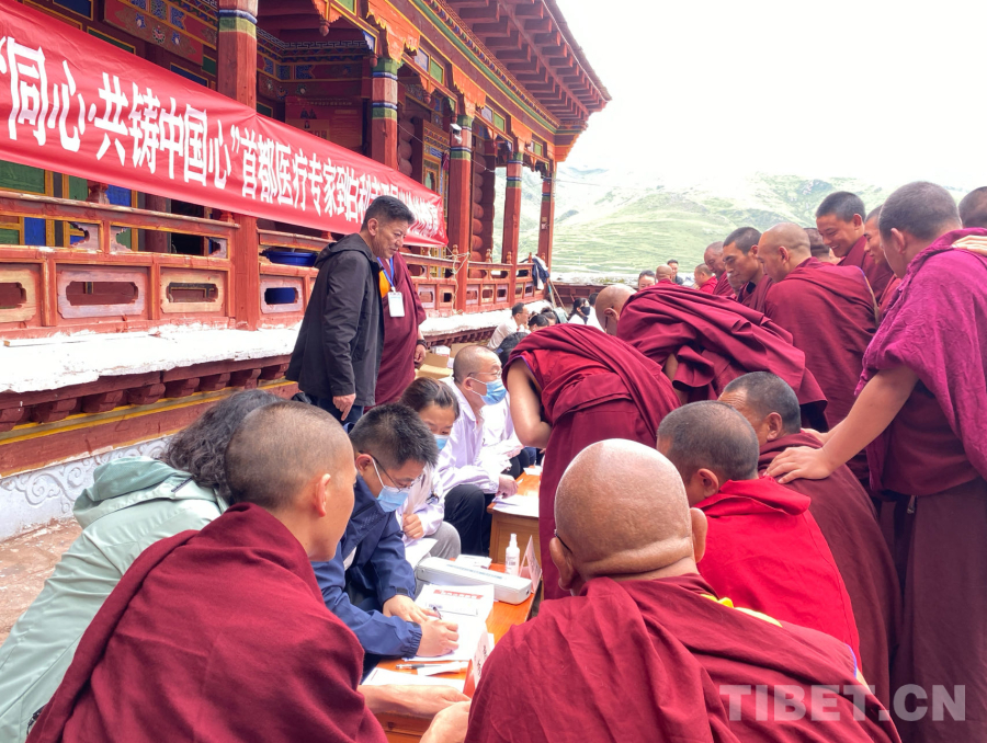 中國西藏網(wǎng)訊 7月9日上午,“同心·共鑄中國心”甘孜縣分隊部分專家列入紅一連和紅三連(小分隊),驅(qū)車前往甘孜縣白利寺,為白利寺僧眾義診?,F(xiàn)場設有骨關節(jié)科、中醫(yī)科、耳鼻喉科、內(nèi)科等多個窗口,開展點對點、科對科的細致咨詢與診療。