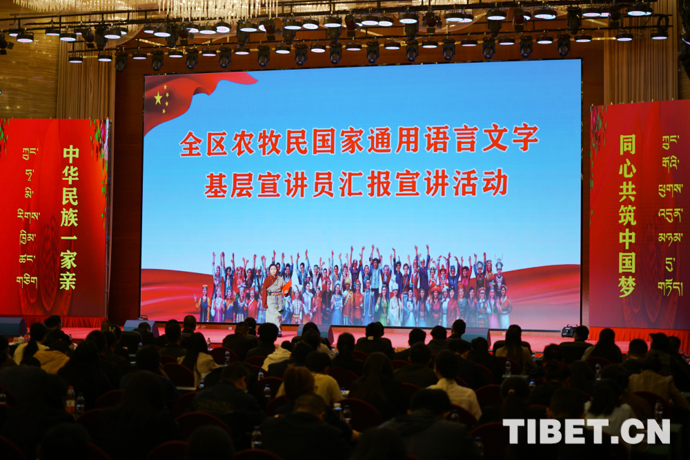 圖為西藏全區(qū)農(nóng)牧民國家通用語言文字基層宣講員匯報宣講活動現(xiàn)場 攝影:趙振宇