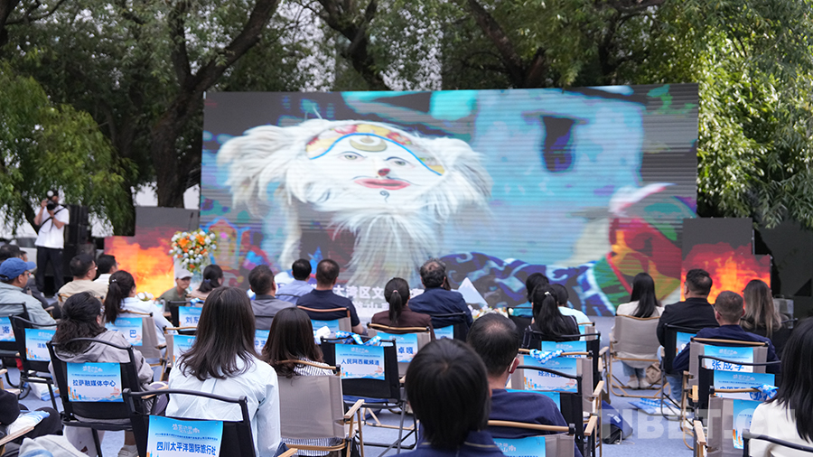 圖為現(xiàn)場(chǎng)嘉賓觀看山南的宣傳片 攝影:德吉卓瑪