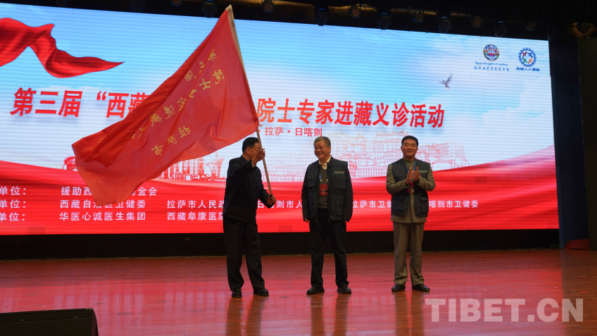 圖為第三屆“西藏人人健康”院士專家進(jìn)藏義診活動啟動儀式授旗現(xiàn)場 攝影:王淑