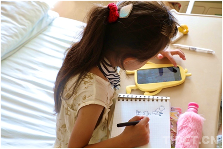 記者了解到,澤多家里共有4個(gè)孩子,小澤丹在四個(gè)兄弟姐妹中排行老三,也是家中最好學(xué)的孩子。在醫(yī)院病房里,小澤丹拿著一本自己專屬的筆記本,反復(fù)在上面寫著自己的漢文和藏文名“澤丹(????????)”。有時(shí)她也會(huì)照著手機(jī)里的圖片,一筆一劃有模有樣地勾勒出各種圖案。