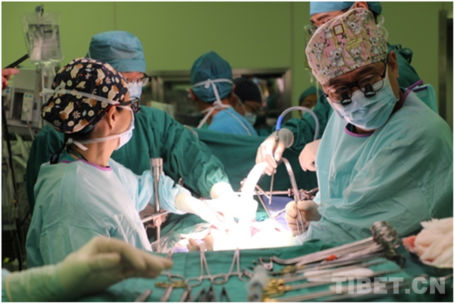 圖為醫(yī)療專家團(tuán)隊(duì)正在為患兒實(shí)施手術(shù) 攝影:龍真多吉