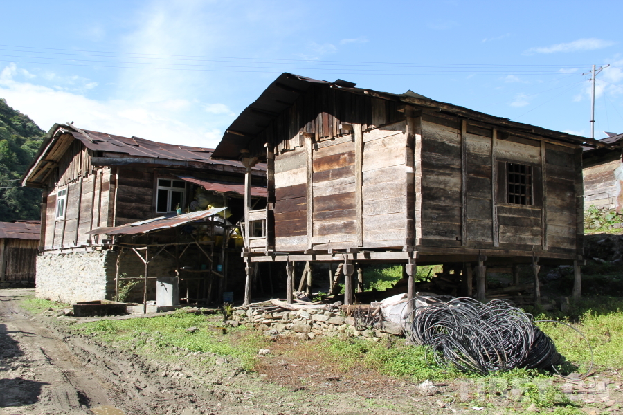 圖為林芝市墨脫縣背崩鄉(xiāng)波東村民居