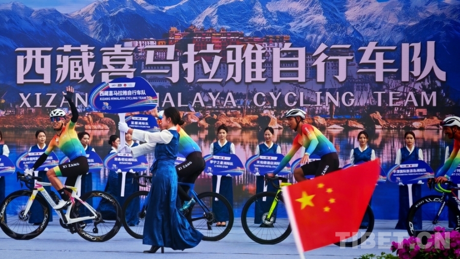 圖為西藏喜馬拉雅自行車(chē)隊(duì)登臺(tái)亮相 攝影:馮重霖