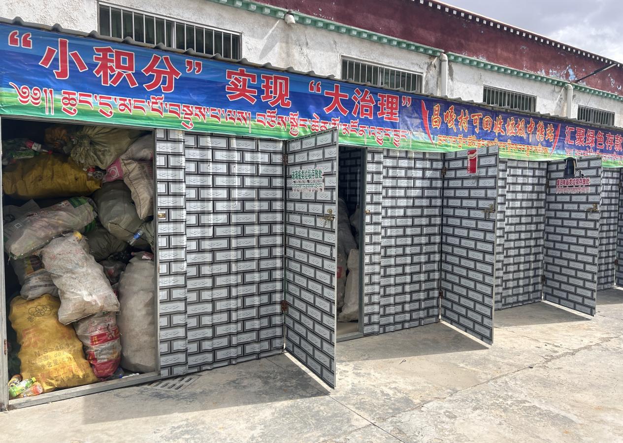 積分制促進了社區(qū)聯(lián)結和經(jīng)濟消費,還推動了鄉(xiāng)村生態(tài)的良性治理。瓊結縣加麻鄉(xiāng)昌嘎村駐村工作隊的格桑多吉展示了“五門聯(lián)排”的可回收垃圾中轉站,“這些垃圾由村委會收集起來后統(tǒng)一送去回收,回收的資金會放在‘文化銀行’中用于購買新的積分物品?!倍劣凇袄钡膩碓?,則依賴“綠色銀行”對村民的激勵?!鞍▔牡碾婏堨摇⒏邏哄?,都可以送到村委會進行統(tǒng)一回收。”格桑多吉介紹說,村民將分類整理好的垃圾送至“綠色銀行”,通過“兩委”班子和村務監(jiān)督委員會委員核定之后,可以根據(jù)《綠色銀行兌換項目表》直接兌換商品用于日常生產(chǎn)生活。自“綠色銀行”推行以來,昌嘎村累計兌換商品總價值6千元,讓行動變積分、積分變商品,充分調(diào)動了群眾參與鄉(xiāng)村生態(tài)建設的積極性。