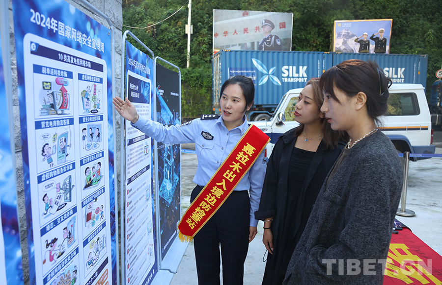 圖為聶拉木出入境邊防檢查站移民管理警察開展網(wǎng)絡(luò)安全周集中宣傳活動(dòng) 攝影:高榮元