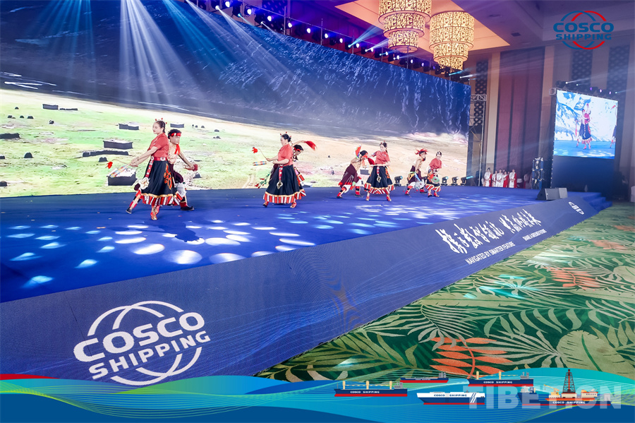 圖為洛隆縣藝術(shù)團(tuán)在中遠(yuǎn)海運(yùn)特運(yùn)2024全球合作伙伴大會上精彩亮相