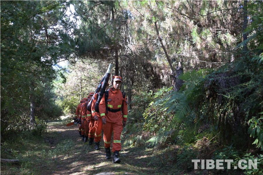 圖為波密縣森林消防員在林區(qū)巡護