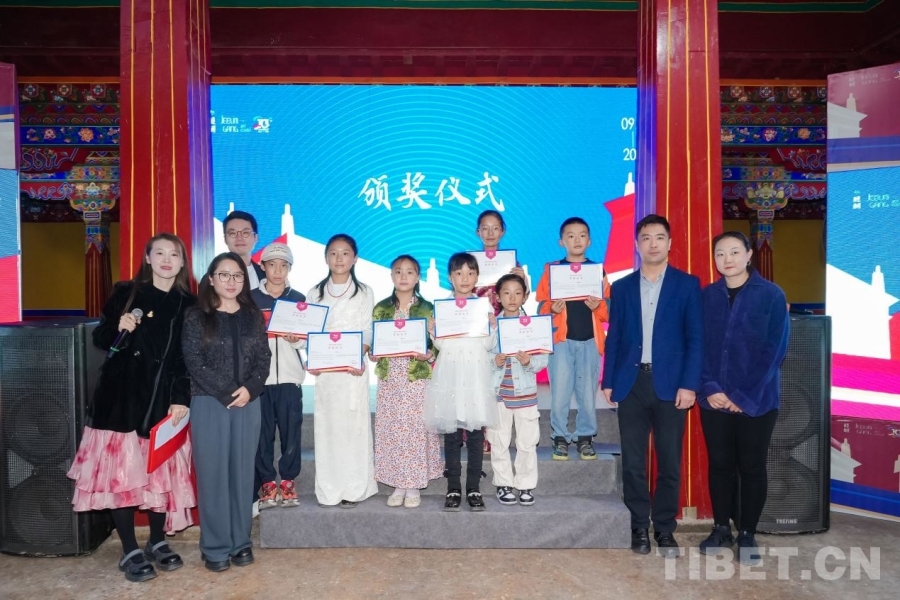 圖為分享會(huì)現(xiàn)場(chǎng)為拉薩公共文化藝術(shù)教育研學(xué)優(yōu)秀中小學(xué)生代表頒發(fā)榮譽(yù)證書(shū)