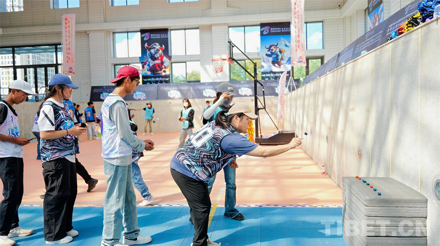 “投壺是中國古代宴飲時做的一種投擲游戲,也是一種禮儀。愛看古裝劇的人應該都在影視作品里看過,這是一個由游戲者輪流站在離壺一定距離的地方,用手把箭投向壺中并計算得分的游戲。”“打牛角和阿久(羊拐)是一項流傳至今的西藏古老民間傳統(tǒng)體育活動,具有很強的娛樂性、趣味性和技巧性,能夠鍛煉身體,還能給我們帶來參與其中的快樂……”每項活動開啟前,晉美次旦向現(xiàn)場參與人員一一講解這項運動的由來以及發(fā)展現(xiàn)狀,大家聽得十分認真,隨后又積極參加各項活動?;顒蝇F(xiàn)場熱鬧非凡、歡聲笑語不斷,營造了濃厚的健身氛圍。
