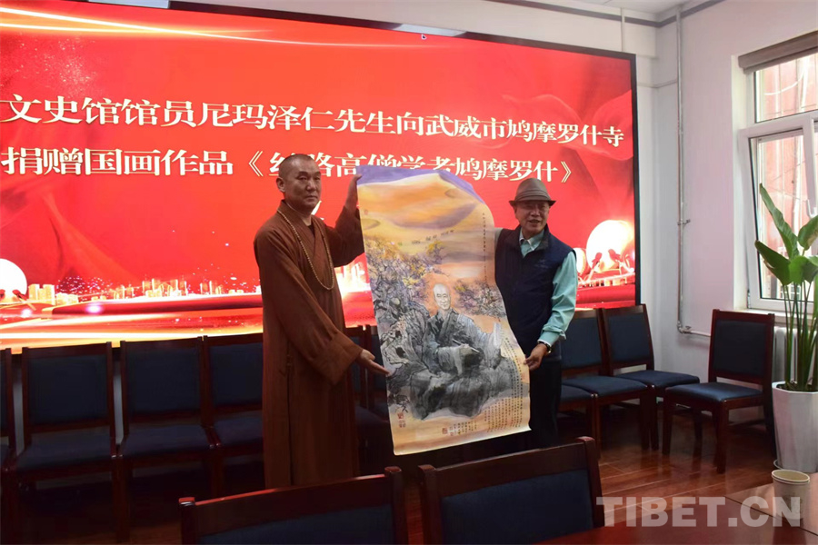 中國西藏網(wǎng)訊 9月23日,甘肅省武威市鳩摩羅什寺在蘭州舉辦《絲路高僧學(xué)者鳩摩羅什》國畫作品捐贈儀式,該作品由著名藏族畫家尼瑪澤仁捐贈。