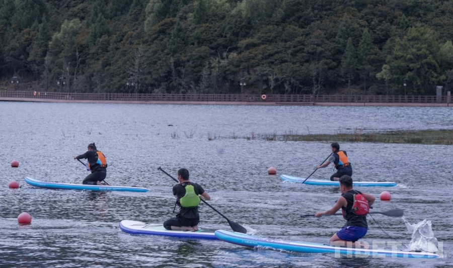 中國(guó)西藏網(wǎng)訊 9月26日,2024年“綠水青山”中國(guó)休閑運(yùn)動(dòng)挑戰(zhàn)賽(西藏林芝站)在西藏林芝魯朗國(guó)際旅游小鎮(zhèn)開賽。來自全國(guó)各地的百余名體育健兒及愛好者相聚在扎塘魯錯(cuò)湖畔,共同在藍(lán)天白云下、綠水青山間揮槳競(jìng)逐。