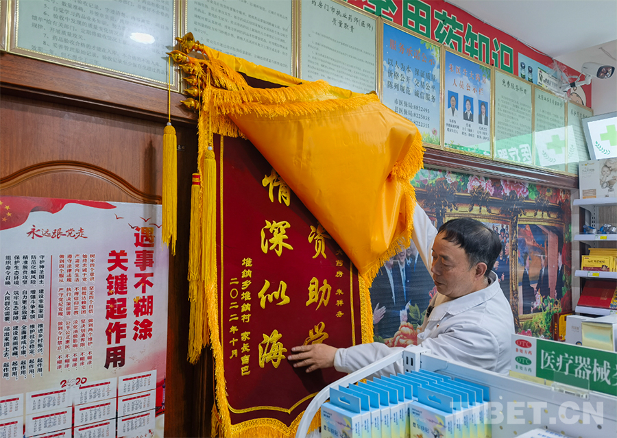 老百姓對朱祥務(wù)的回饋則直觀明了得多。在藥房里,有一根掛滿了哈達(dá)的立柱,每一條潔白的哈達(dá)都代表著一位受助人、好朋友對朱祥務(wù)的敬佩和感激。另一側(cè)的墻上,還有那堆疊在一起,幾乎要掛不下的錦旗……