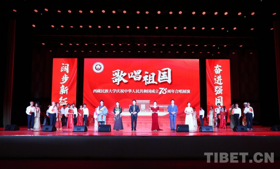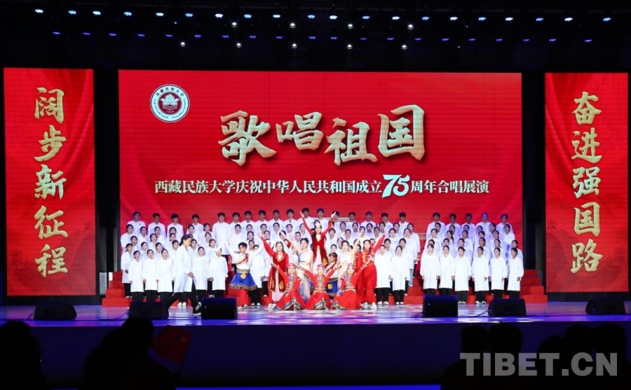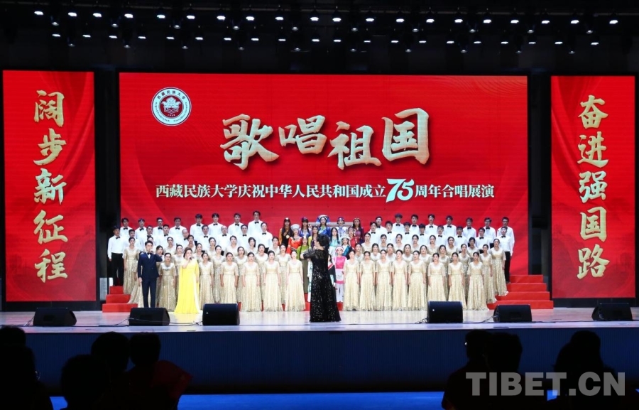 中國西藏網訊 紅旗獵獵,歌聲嘹亮。在喜迎中華人民共和國成立75周年之際,9月28日,一場以“歌唱祖國”為主題的合唱展演在西藏民族大學文體館舉行。