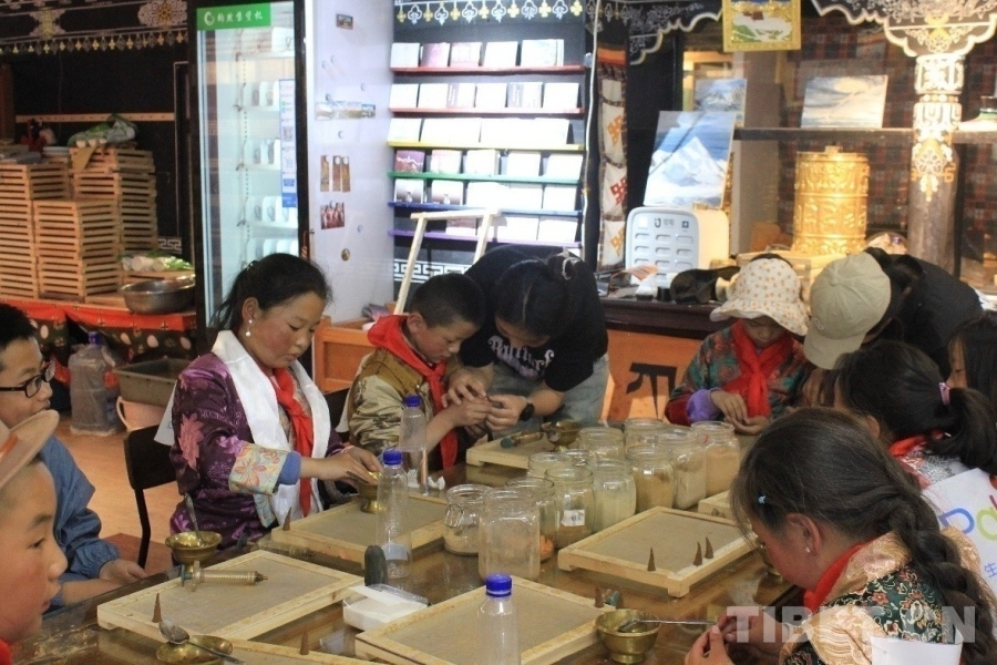 圖為研學(xué)游學(xué)生在工作人員的指導(dǎo)下制作藏香 攝影:蔣馨悅