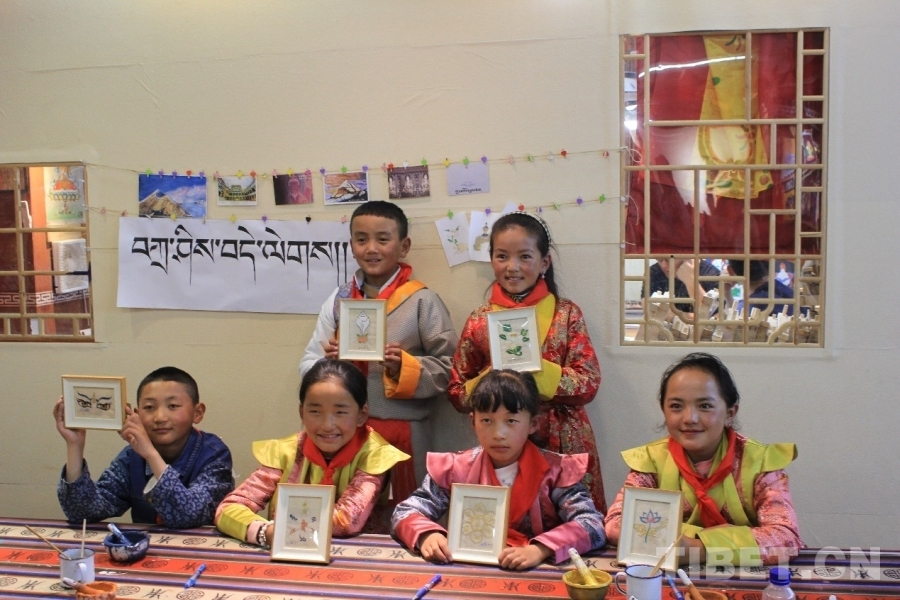 圖為研學(xué)游學(xué)生與自繪的唐卡作品合影 攝影:蔣馨悅