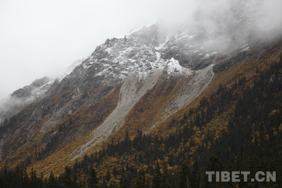 秋日是靜謐的,是金燦燦的,也是火紅的。在西藏自治區(qū)昌都市八宿縣看見(jiàn)的秋色,不僅有山頂?shù)陌籽?,山間黃綠相間的林海,還有半山腰若隱若現(xiàn)的云霧。