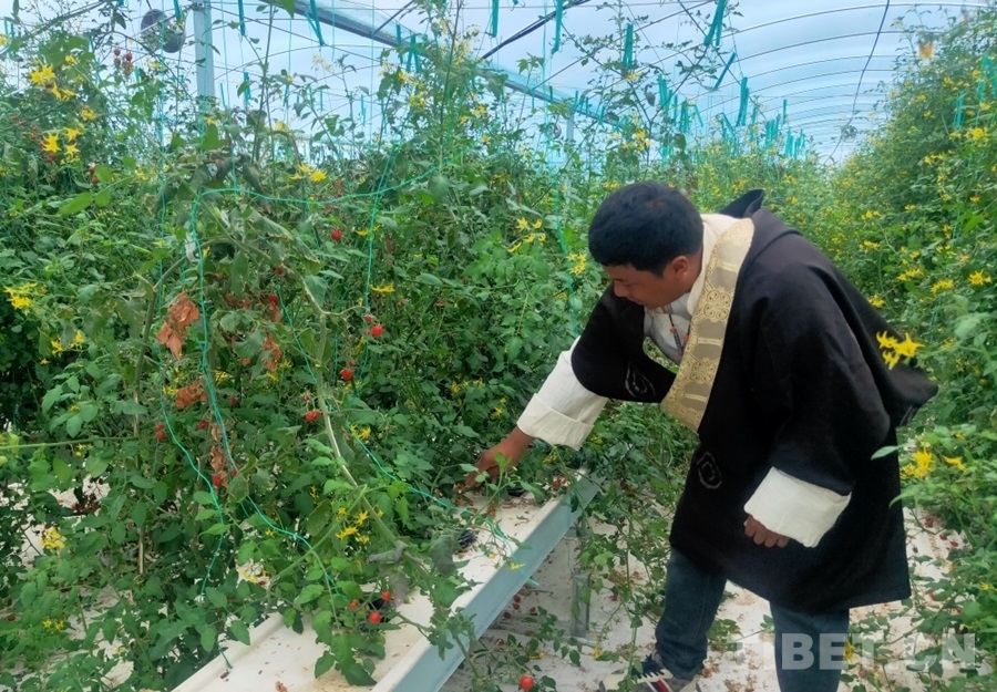 中國(guó)西藏網(wǎng)訊 “我今年34歲,是村里的大學(xué)生,從去年開(kāi)始在這里工作?!苯罎扇蕘?lái)自昌都市八宿縣旺比村,是八宿縣物聯(lián)網(wǎng)高效植物工廠的生產(chǎn)管理員?!拔覀兩a(chǎn)的圣女果主要在縣里銷售,收益很好。這邊固定員工有三位大學(xué)生和兩位旺比村村民。果子采摘的時(shí)候,忙不過(guò)來(lái),我們還需要再多找些村民來(lái)幫忙,每天能給到160元的工資?!闭勂鹱约核诘闹参锕S,江永澤仁語(yǔ)氣中的滿意和驕傲溢于言表?!懊髂晡覀冞€要計(jì)劃種植藍(lán)莓呢,已經(jīng)有同事到山南去參加相關(guān)培訓(xùn)了?!?nbsp;