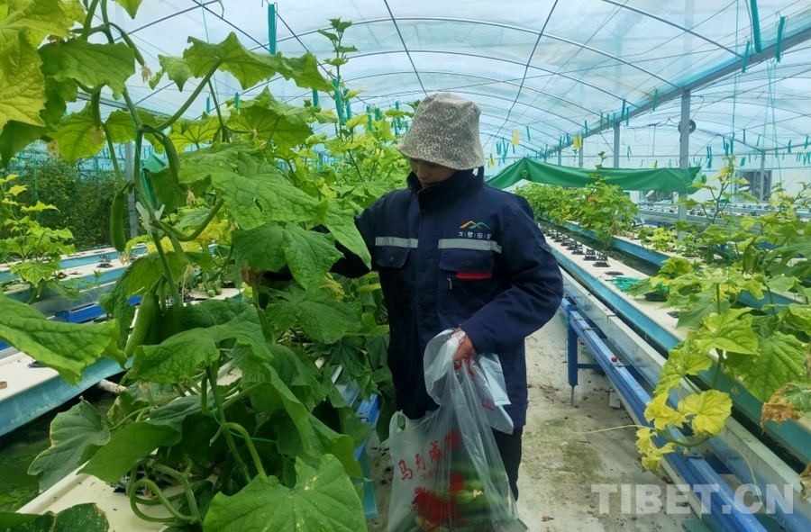 圖為德吉曲西采摘黃瓜 攝影:周晴晴