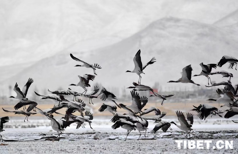 資料圖:拉魯濕地成群的越冬候鳥(niǎo)(攝于2024年1月) 攝影:覺(jué)果