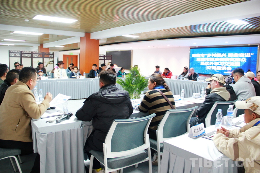 圖為10月22日,來自西藏自治區(qū)的那曲市第三屆“鄉(xiāng)村振興 那曲奮進(jìn)”活動市級決賽第一名獲獎群眾代表區(qū)外學(xué)習(xí)交流團(tuán)抵達(dá)住地后,與中國藏學(xué)研究中心專家們進(jìn)行交流座談 攝影:劉莉