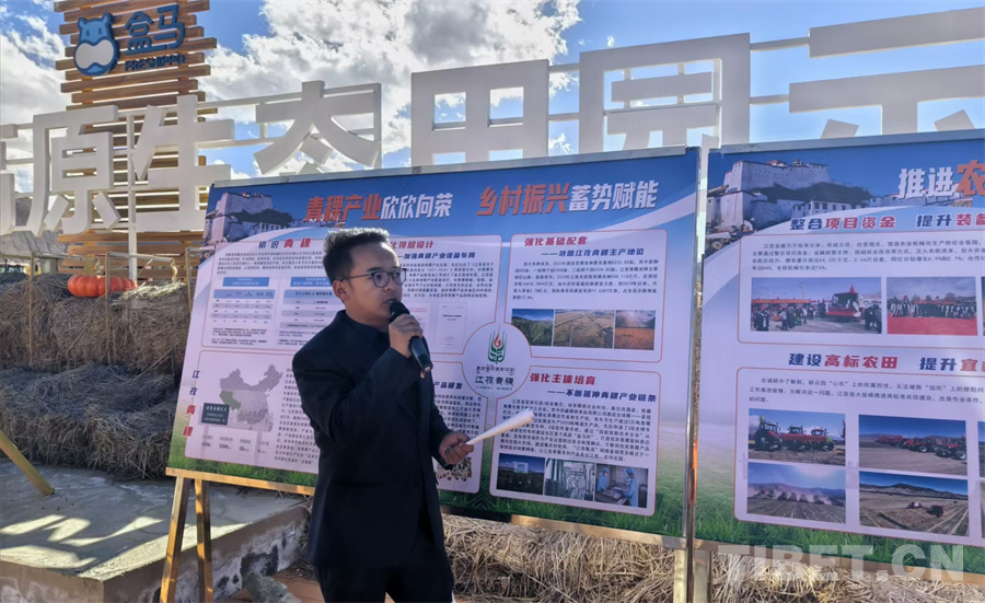 圖為江孜縣負責(zé)人介紹青稞產(chǎn)業(yè)情況 攝影:陳卓然