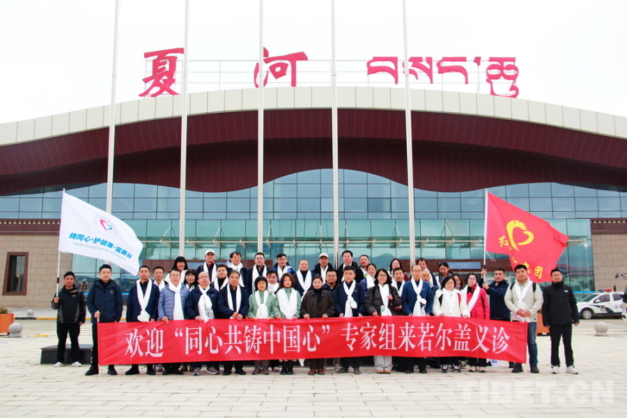 圖為“同心共鑄 情暖阿壩——‘同心·共鑄中國心’2024阿壩行”活動赴四川省阿壩藏族羌族自治州若爾蓋縣的醫(yī)務志愿者在甘肅省甘南夏河機場合影 攝影:劉莉