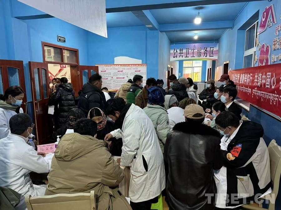 義診中,室外大雪紛飛,寒意襲人,專家團隊卻熱情高漲,克服著自身的高原反應,熱心、耐心地為當?shù)厝罕娍丛\、開具處方和給予生活建議。當?shù)厝罕姀臒崆衅谂伪本<业牡絹?,到按方領取同心·共鑄中國心活動捐贈的對癥藥品滿意而歸,義診現(xiàn)場就是一場充滿熱情的雙向奔赴。(中國西藏網(wǎng) 記者/賈春玲)