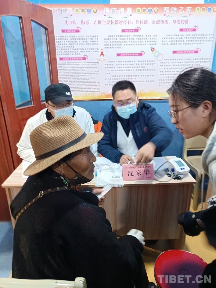圖為航天總醫(yī)院內(nèi)分泌科專家沈巾然為當(dāng)?shù)厝罕娍丛\ 攝影:賈春玲