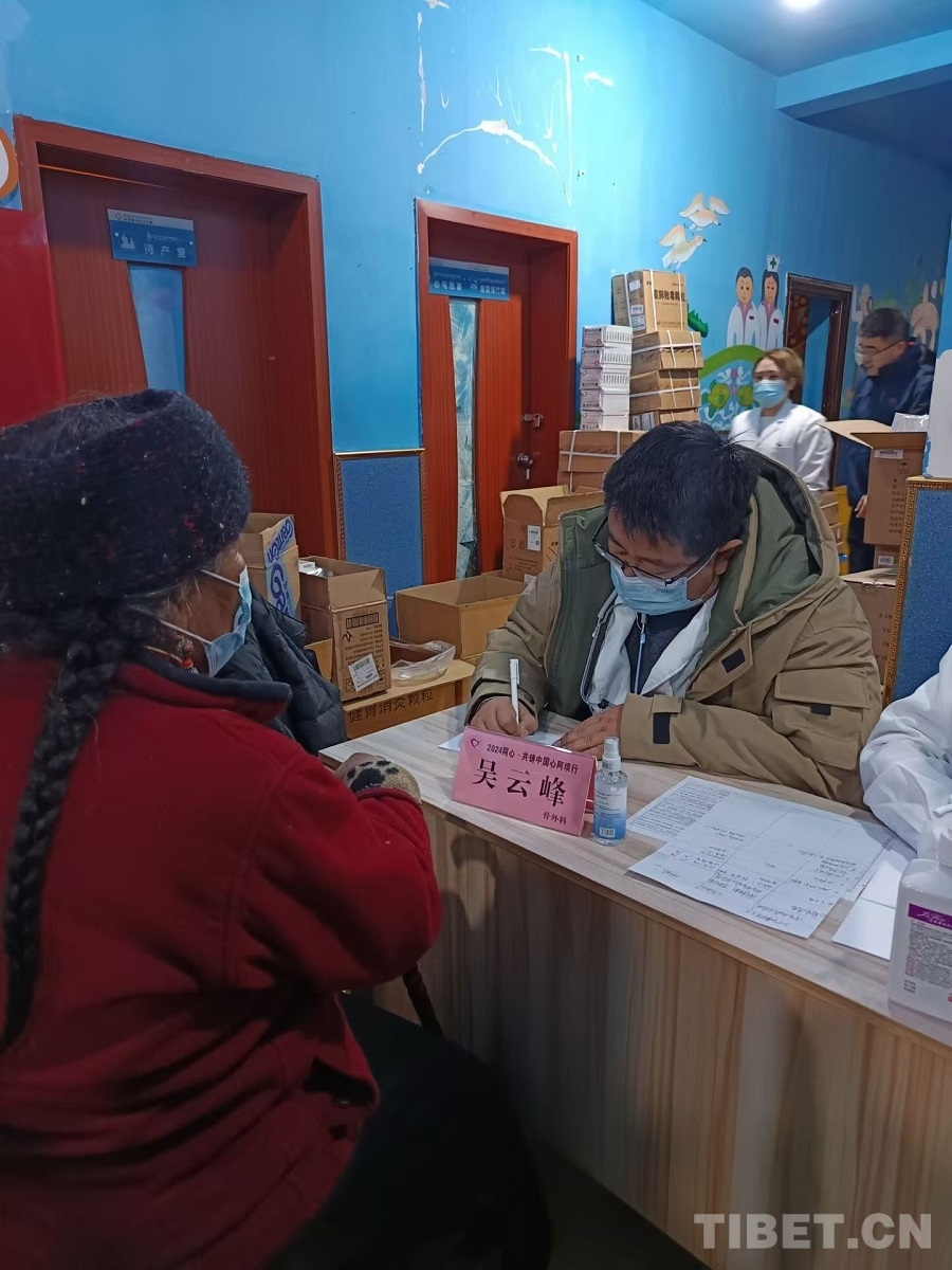 圖為中國康復(fù)研究中心骨科專家唐鵬為當(dāng)?shù)厝罕娍丛\ 攝影:賈春玲