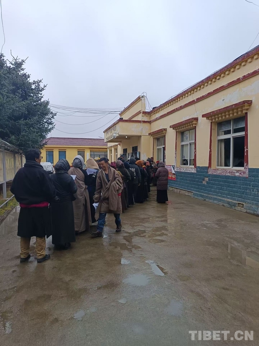圖為當(dāng)?shù)厝罕娭刃蚓慌抨?duì)領(lǐng)取捐贈藥品 攝影:賈春玲