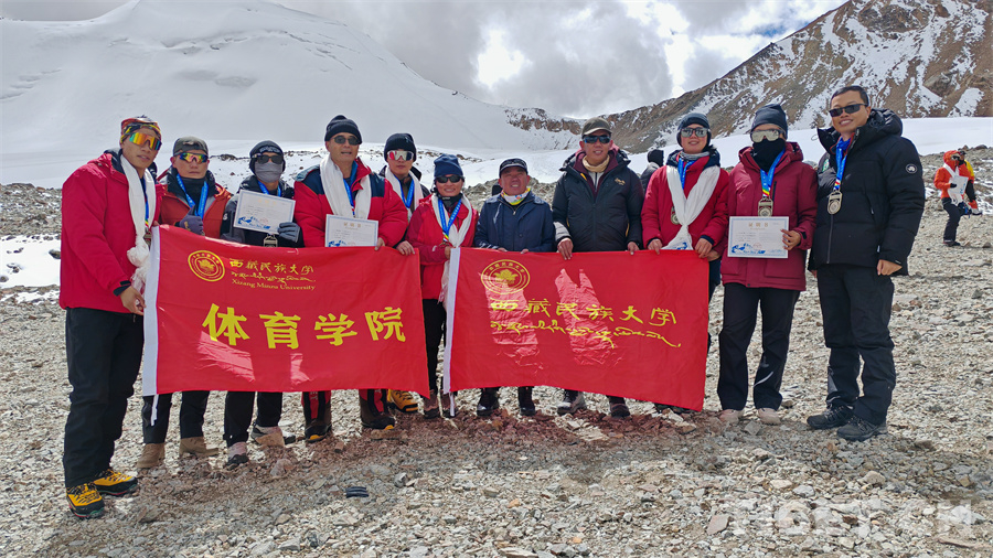 圖為2024第二十一屆中國(guó)西藏登山大會(huì)西藏民族大學(xué)部分師生登頂洛堆峰后合影留念,左四為楊建軍教授 攝影:馮重霖
