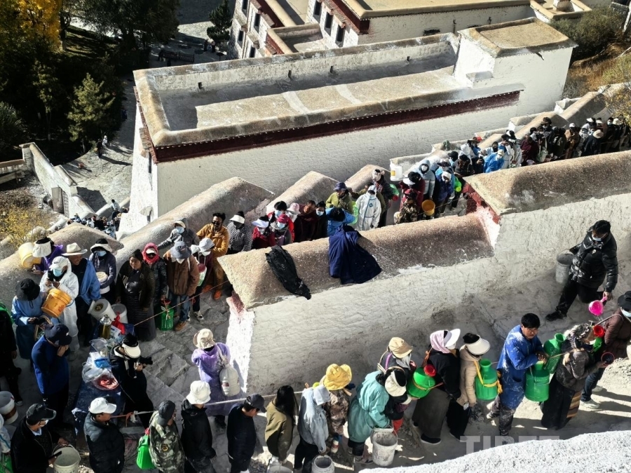圖為群眾在布達(dá)拉宮刷墻現(xiàn)場(chǎng)排起長隊(duì) 攝影:王淑