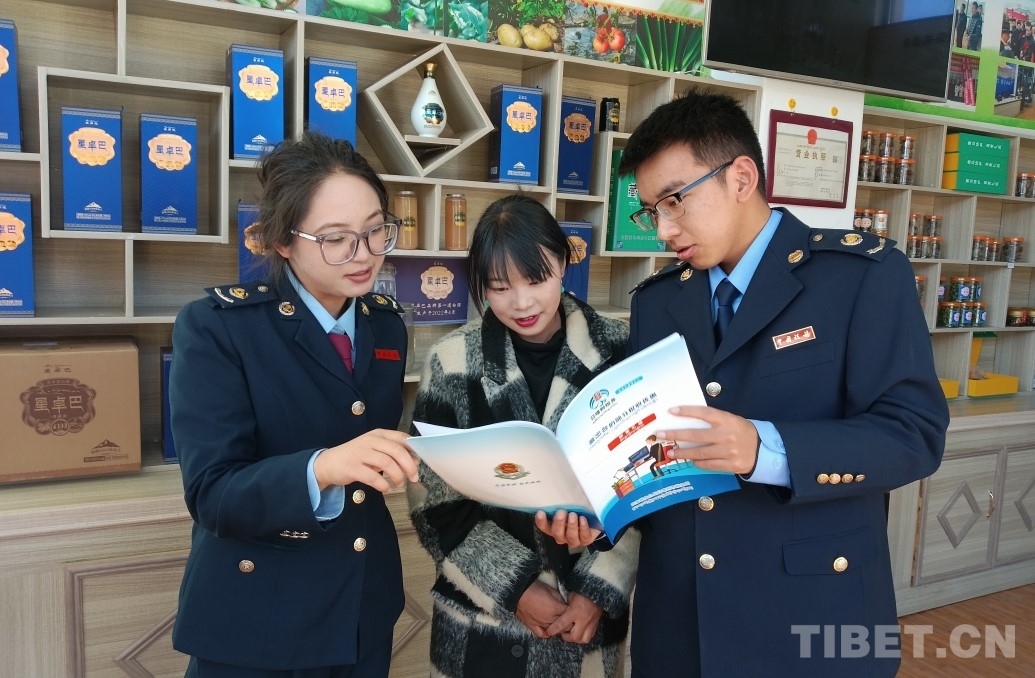 圖為稅務(wù)工作人員為南木林縣艾瑪炸土豆飯店工作人員講解相關(guān)政策