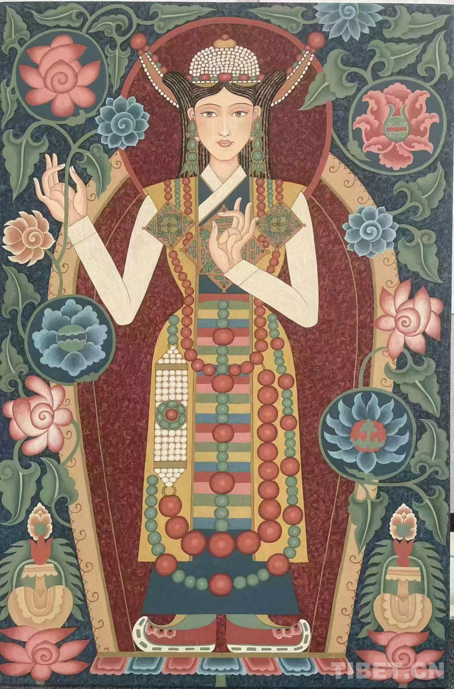 本屆西藏精品唐卡展以“傳承·創(chuàng)新·和諧”為主題,共展出60幅唐卡作品和20幅當(dāng)代布面重彩作品,作品創(chuàng)作題材廣泛、風(fēng)格流派多樣,藝術(shù)樣式豐富,不僅展現(xiàn)了傳統(tǒng)唐卡的精湛技藝,也融入了現(xiàn)代元素,展現(xiàn)了藝術(shù)家們對傳統(tǒng)與現(xiàn)代的深刻理解和獨(dú)特見解。這種多樣化、多元化的藝術(shù)展示,不僅使作品具有了更為豐富的表現(xiàn)力和視覺沖擊力,同時也為西藏當(dāng)代唐卡藝術(shù)創(chuàng)作注入了新的活力,為西藏當(dāng)代唐卡藝術(shù)多元發(fā)展奠定了良好的基礎(chǔ)。