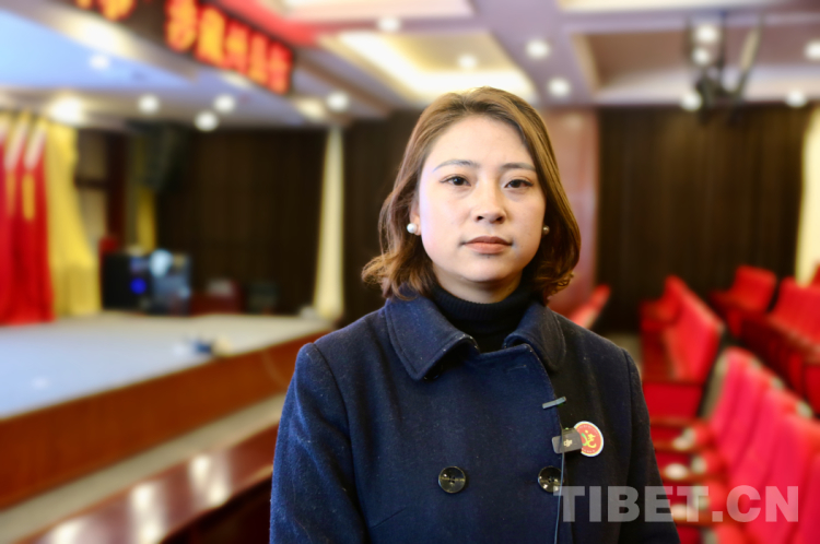 圖為新龍縣中學(xué)教師扎西德吉接受記者采訪 攝影:龍真多吉