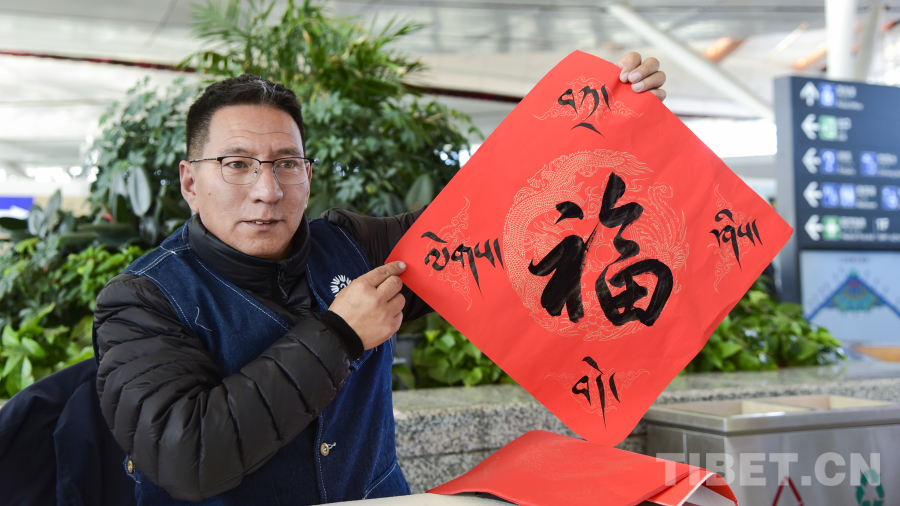 活動現(xiàn)場,29名西藏文藝志愿者走進(jìn)拉薩貢嘎國際機(jī)場航站樓,開展送“?!弊?、送“扎西德勒”、送春聯(lián)、扎木念彈唱等活動,為過往旅客和工作人員帶來了一場別開生面的文化體驗(yàn)。