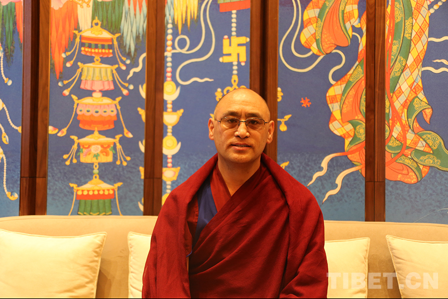 圖為藏傳佛教第十六屆“拓然巴”高級(jí)學(xué)銜獲得者、旺達(dá)寺民管會(huì)主任澤翁巴登接受記者采訪 攝影:龍真多吉