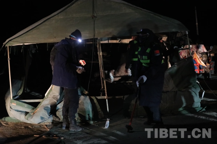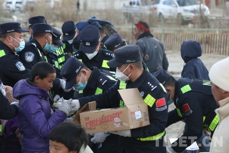 中國西藏網訊 1月7日9時5分,在西藏日喀則市定日縣措果鄉(xiāng)附近發(fā)生6.8級地震,震源深度10千米。西藏出入境邊防檢查總站移民管理警察在定日縣長所鄉(xiāng)雜村參與救援及安置工作。地震災區(qū)第一夜,移民管理警察為當地受災群眾搭建防寒帳篷、發(fā)放各類物資,保證受災群眾有屋住,有飯吃。(中國西藏網 通訊員/郭遠敬)