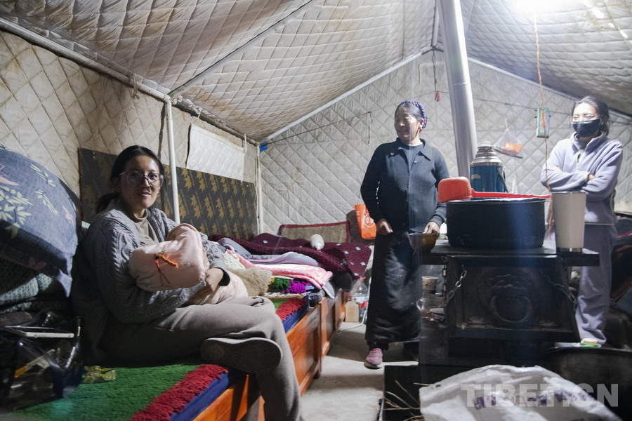 “地震是9點(diǎn)多鐘發(fā)生的,12點(diǎn)鐘我們就已經(jīng)搭建好了帳篷讓次央家住了進(jìn)去,可以說她是全村第一個住進(jìn)帳篷的人??紤]到孩子剛剛出生,我們緊急調(diào)運(yùn)來火爐,讓次央家中第一個升起爐火取暖?!边_(dá)娃白珍說地震發(fā)生后,村兩委及駐村工作隊干部第一時間趕往平時關(guān)照的特殊群眾家中,優(yōu)先幫助他們解決地震后遇到的困難。