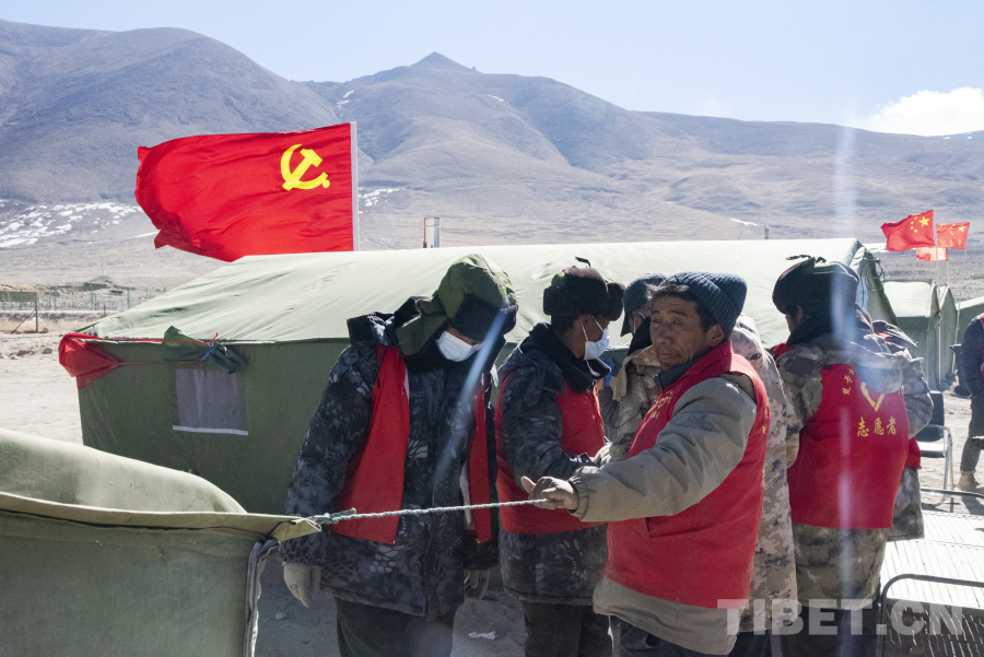 楚卡村村支書索朗正在和黨員志愿者們一起為受災安置點的帳篷進行加固。索朗告訴記者,2015年尼泊爾發(fā)生“4·25”地震時楚卡村受到了較大的影響,西藏自治區(qū)黨委和政府在災后對楚卡村房屋進行了加固和重建,正是得益于黨的好政策,才讓楚卡村在本次地震中沒有人員傷亡,房屋也沒有嚴重的坍塌。雖然楚卡村群眾經(jīng)歷過較大的地震,但在這次地震發(fā)生后群眾的恐慌情緒還是存在的,村內(nèi)的黨員干部們第一時間將安置措施及情況通報給村民,雖然他們現(xiàn)在仍然居住在安置帳篷內(nèi),但他們知道將很快住上板房,對未來的重建充滿了期待。