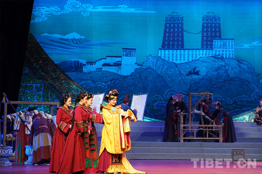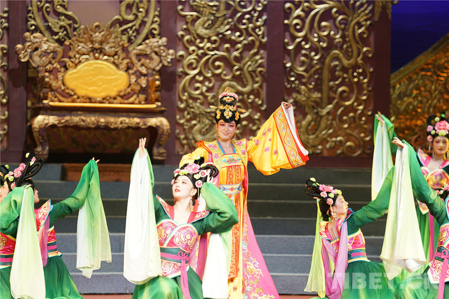 圖為《金城公主》演出現(xiàn)場(chǎng),金城公主在吐蕃傳播文明 攝影:蔣馨悅
