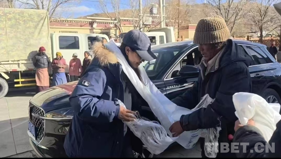 西藏三獻(xiàn)服務(wù)協(xié)會的次仁羅布通過協(xié)會開展物資捐獻(xiàn),籌集了價值40萬元的8車物資運往災(zāi)區(qū);