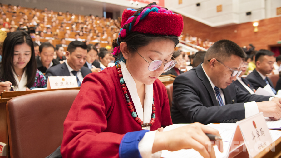 圖為西藏自治區(qū)人大代表聆聽西藏自治區(qū)高級人民法院工作報告 攝影:趙振宇